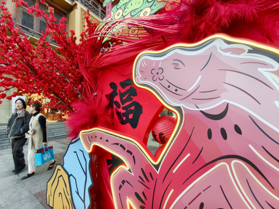 静安寺久光走路街上,新春商场东说念主气旺 新民晚报记者 周馨 摄