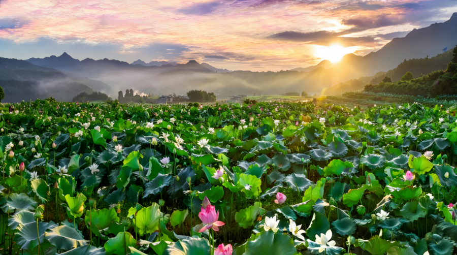 图为建宁县西门外的百口莲塘。
